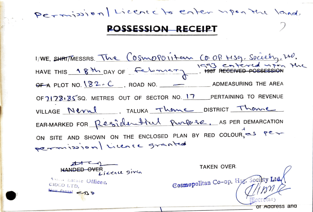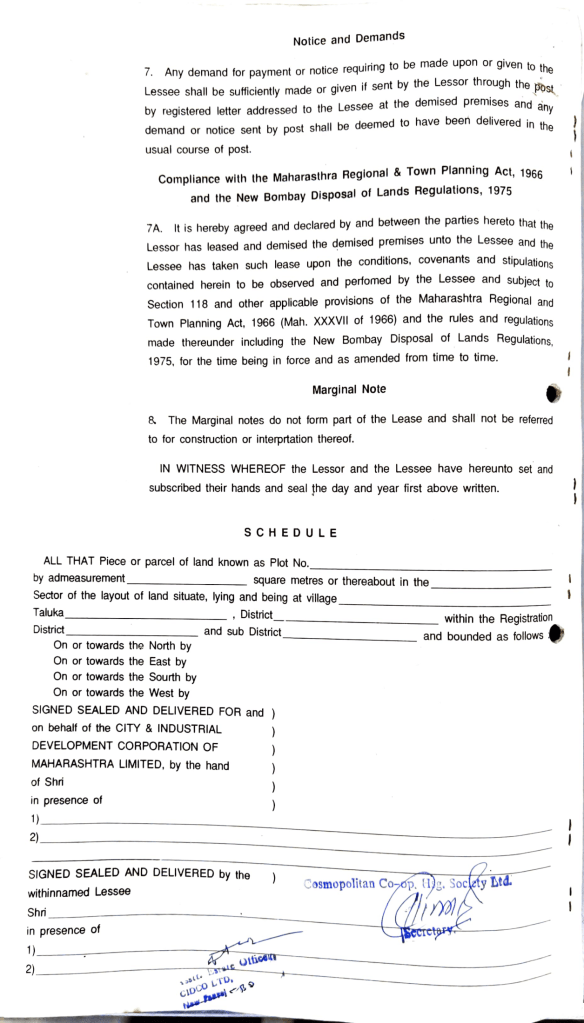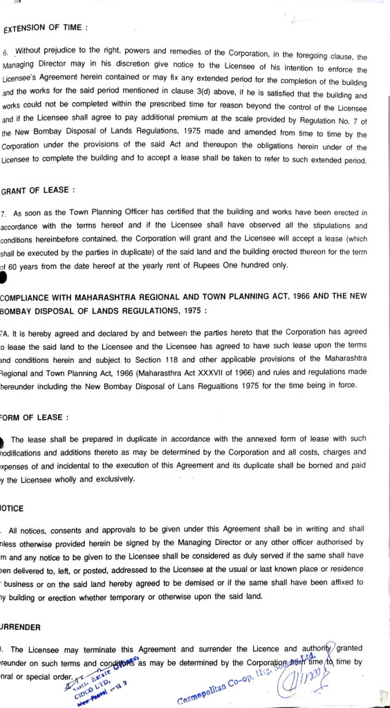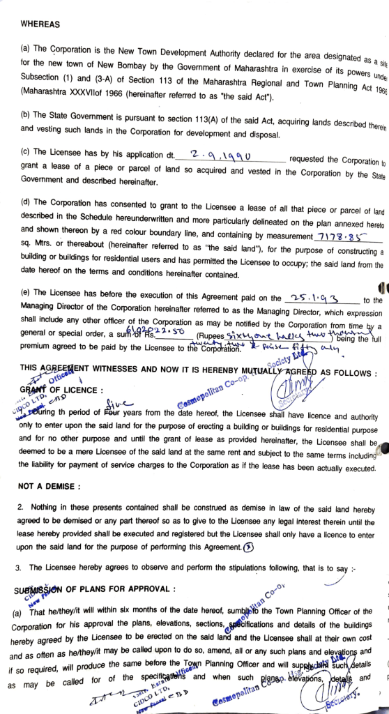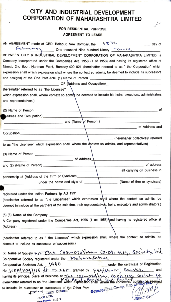 LEASE AGREEMENT BETWEEN CIDCO OF MAHARASHTRA LTD. & MS. THE COSMOPOLITAN CO.OP. HSG. SOCIETY LTD. DATE : 18 / 02 / 1993 Like Loading...