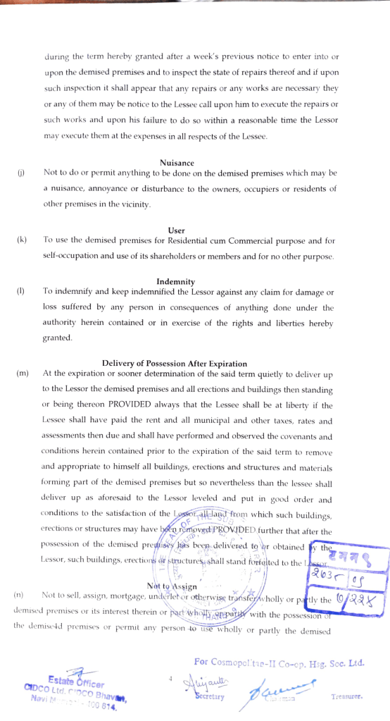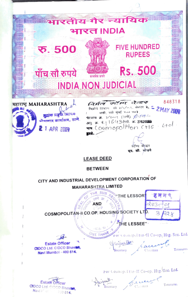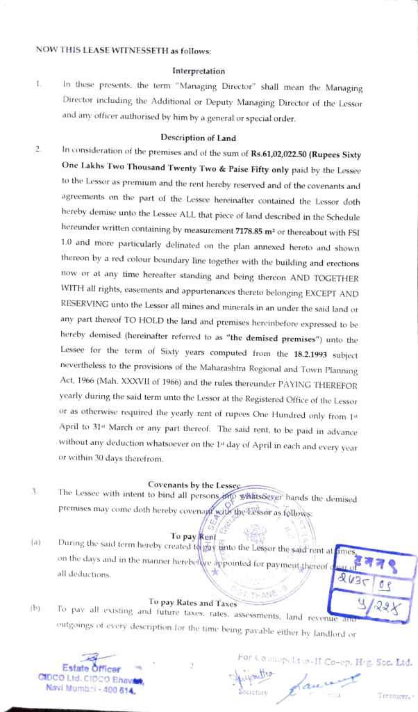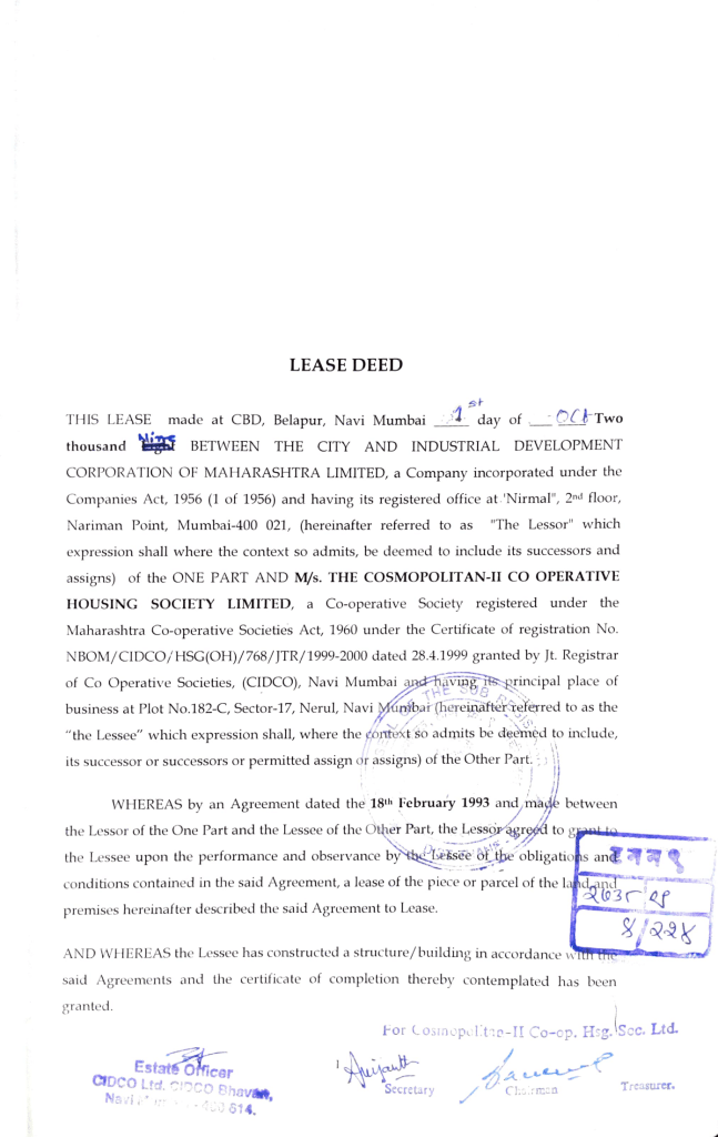 LEASE AGREEMENT BETWEEN COSMOPOLITAN II CO OP HOUSING SOCIETY LTD. & CIDCO DATE : 01 / 10 / 2009 Like Loading...