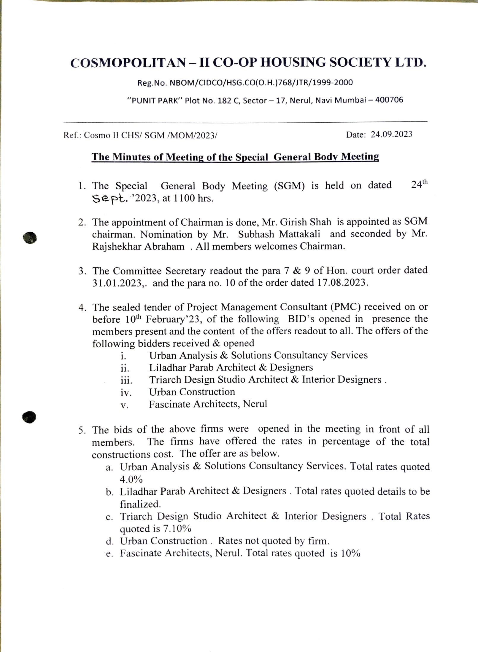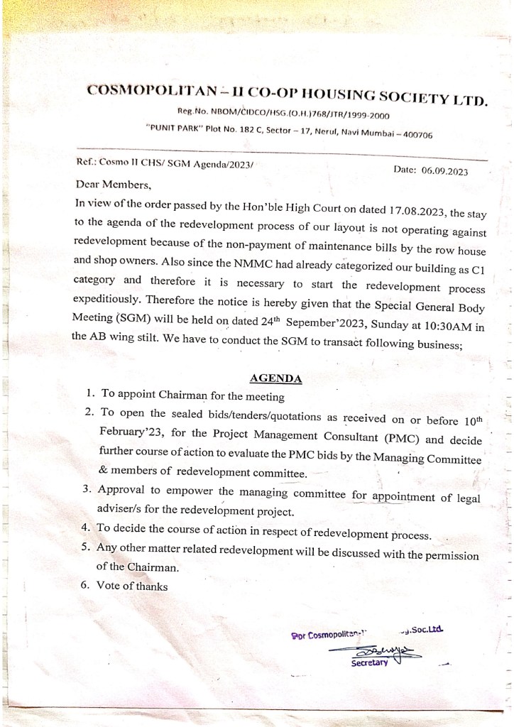 2nd SPECIAL GENERAL BODY MEETING Posted byShree KambleFebruary 4, 2024October 26, 2025Posted inSPECIAL GENERAL BODY MEETING AGENDA: 06.09.2023 MINUTES OF MEETING: 24.09.2023TIME : 11:00 AM Like Loading... Related