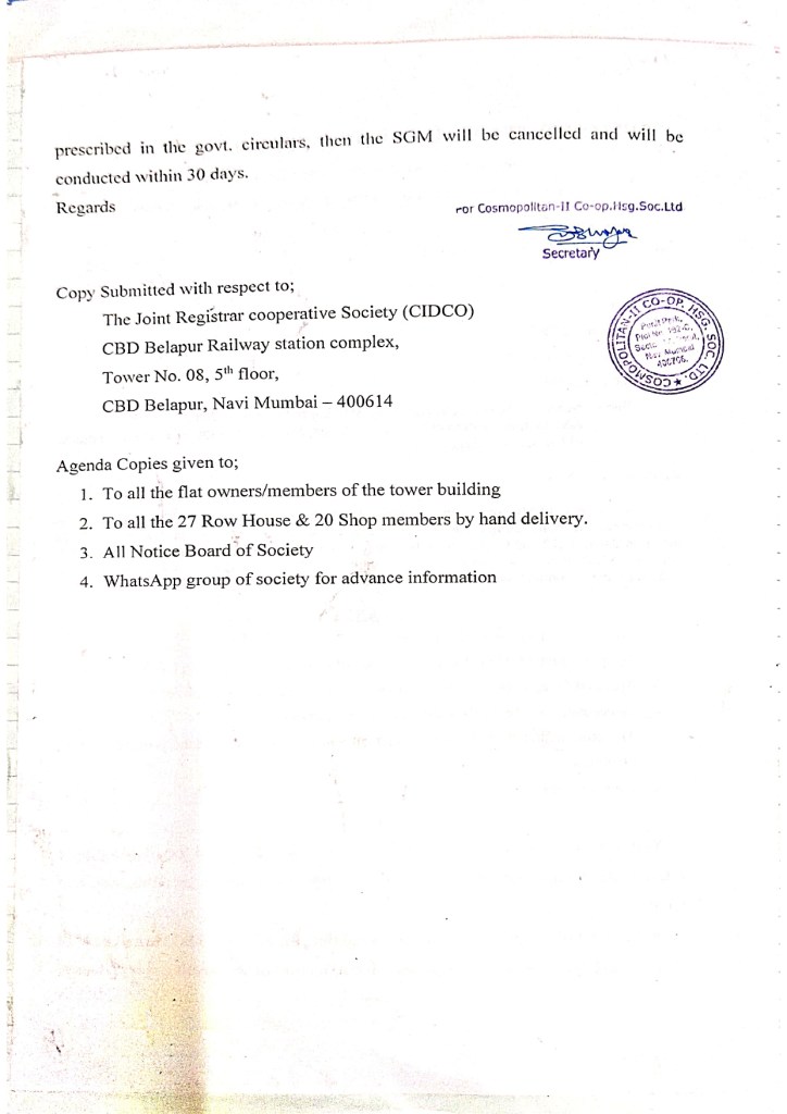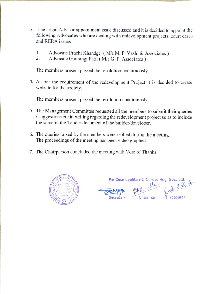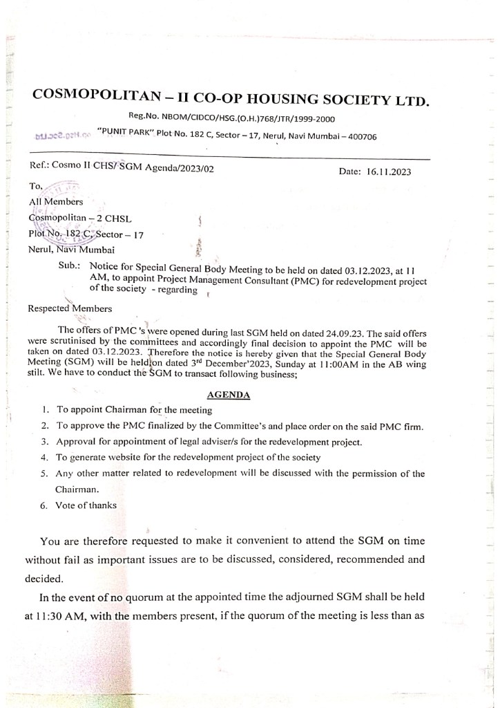 3rd SPECIAL GENERAL BODY MEETING Posted byShree KambleFebruary 4, 2024October 26, 2025Posted inSPECIAL GENERAL BODY MEETING AGENDA: 16.11.2023 MINUTES OF MEETING: 03.12.2023TIME : 11:30 AM Like Loading... Related
