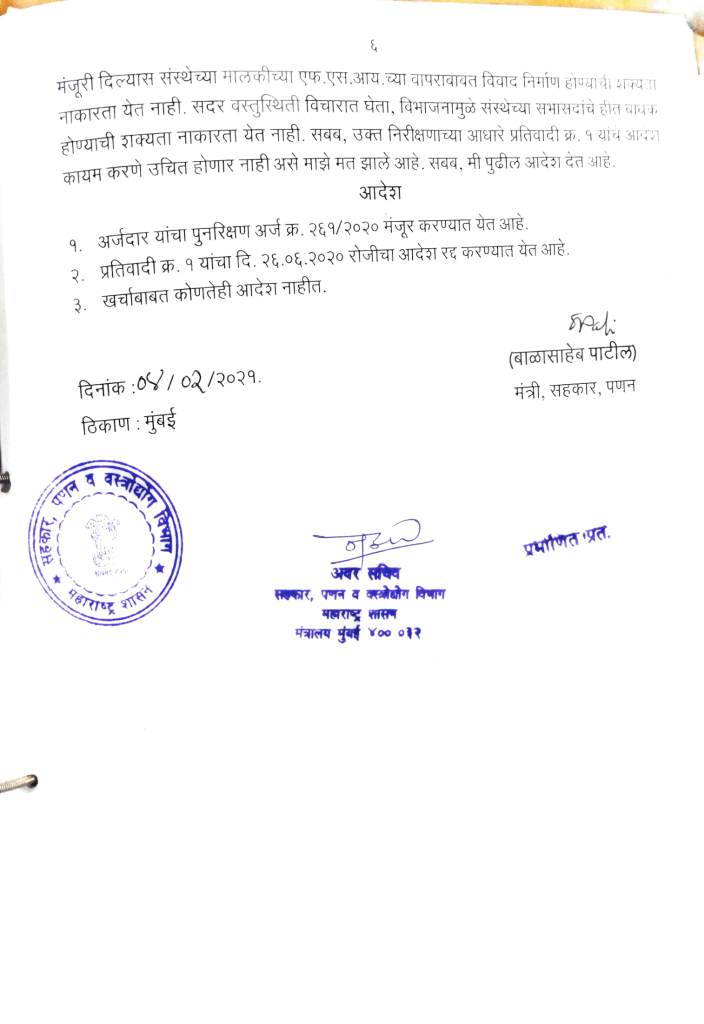 मा. मंत्री, सहकार, पणन, महाराष्ट्र राज्य यांचा आदेश पत्र क्र.: आरव्हीए २०२० / प्र.क्र. २६१ / १५ – स दिनांक : ०४ / ०२ / २०२१ Like Loading...
