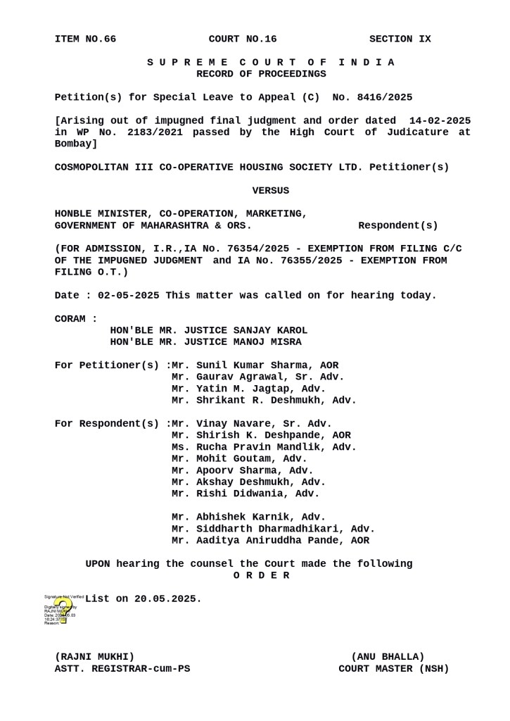 SC order in SLP 8416 of 2025 dated 02.05.25