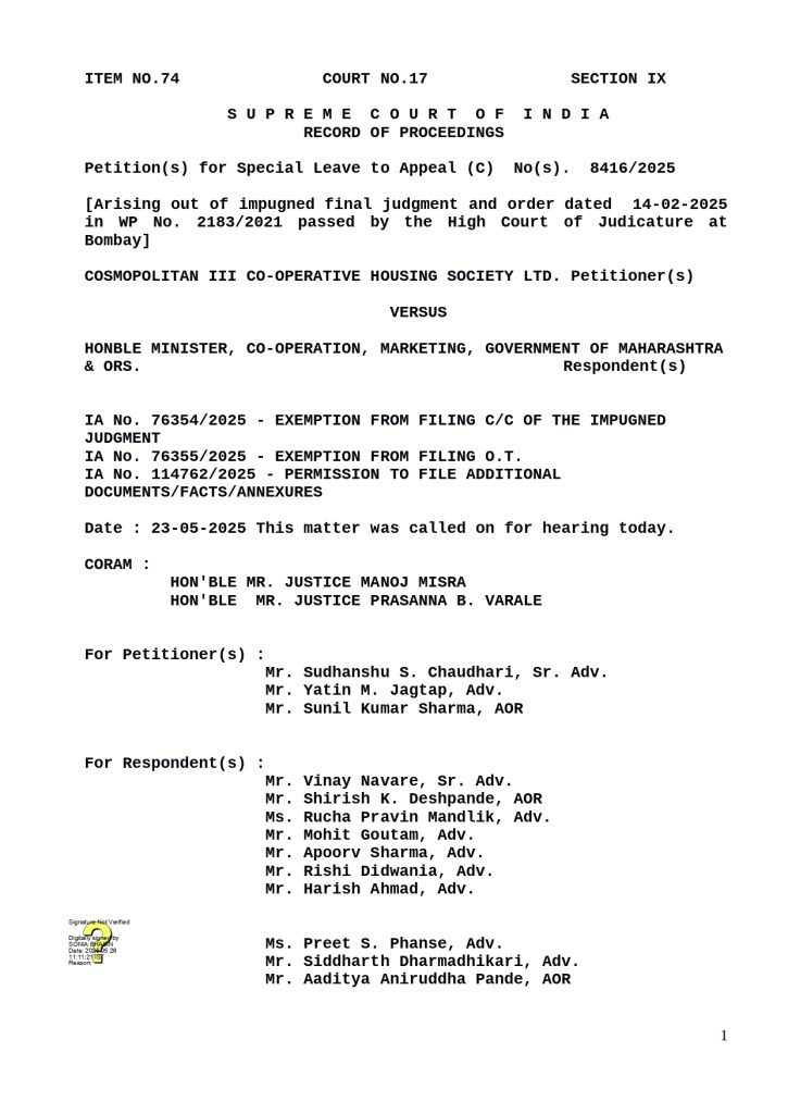 SC order in SLP 8416 of 2025 dated 23.05.25